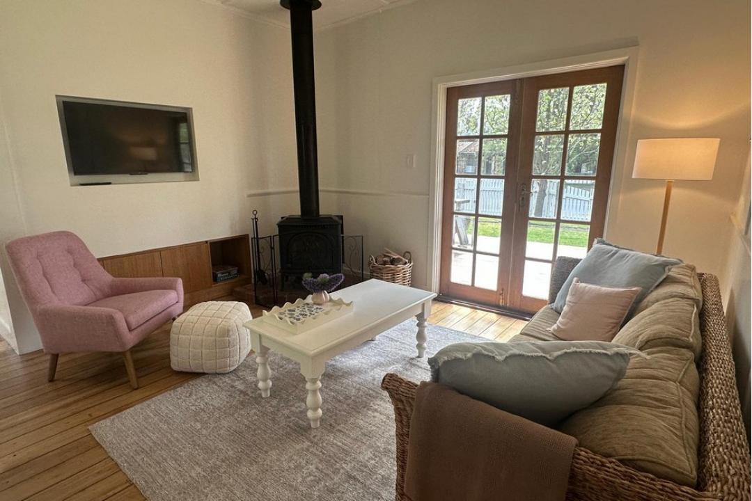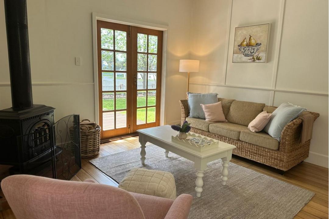 Inside, the cottage exudes warmth and nostalgia with its timber floors, soft furnishings, and a crackling fireplace perfect for cooler nights. The open-plan living area flows effortlessly into a well-equipped kitchen, while the large sun-drenched deck invites you to unwind with a glass of wine and enjoy a balmy summer evening under the stars. Guests are also welcome to pick from the cottages veggie patch, adding a fresh touch of homegrown goodness to their stay.