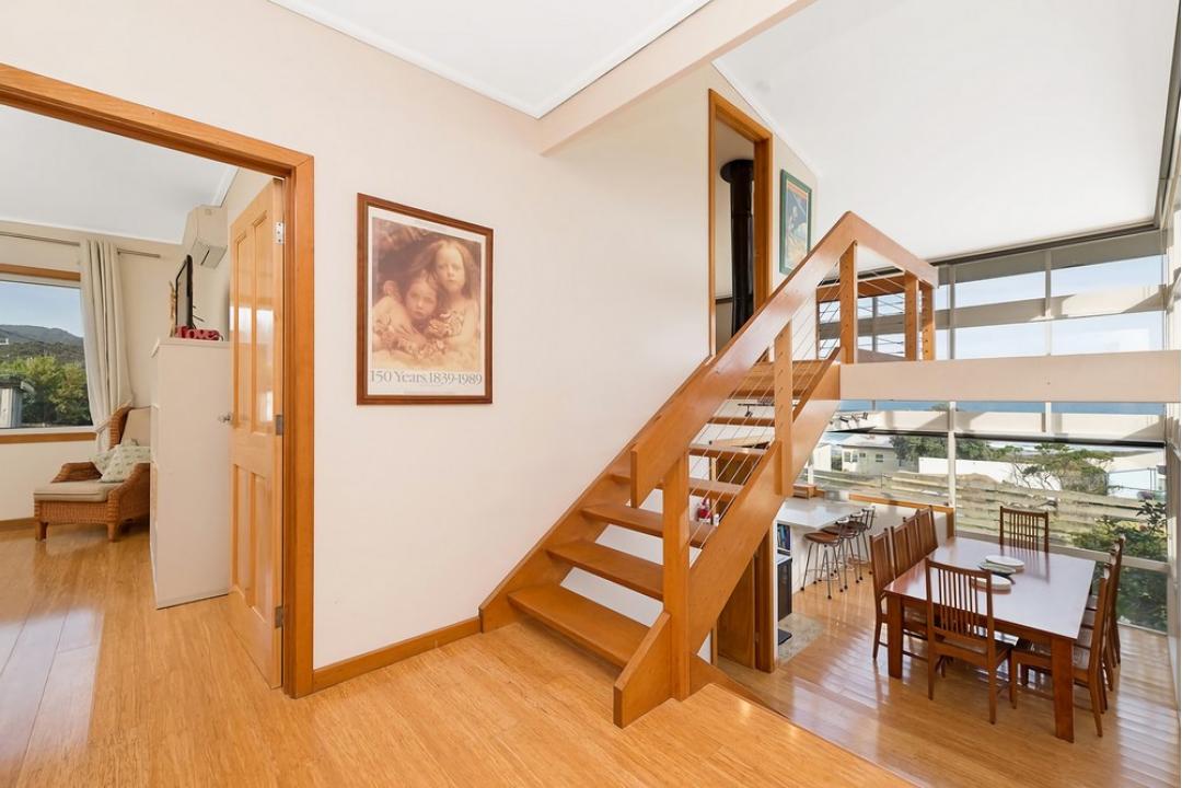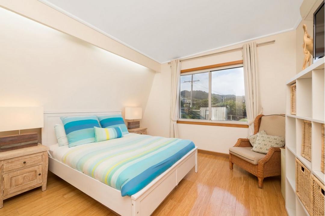 The main bedroom, located on the top level, features a king bed with stunning ocean views, allowing you to fall asleep to the sound of the waves and wake up to the sunrise. The second bedroom offers a queen bed, and the third bedroom accommodates up to four guests with a queen bed and king single bunks. All beds are recently upgraded Koala beds and mattresses.